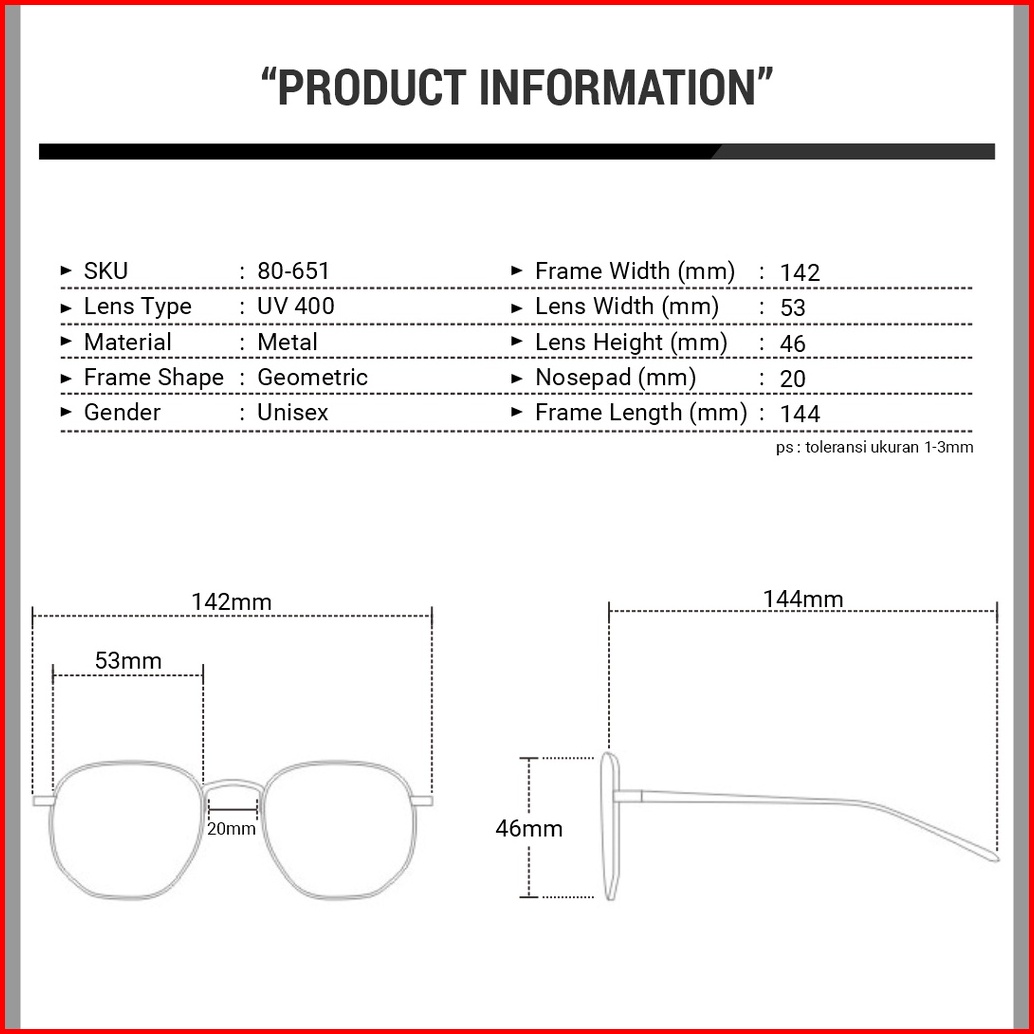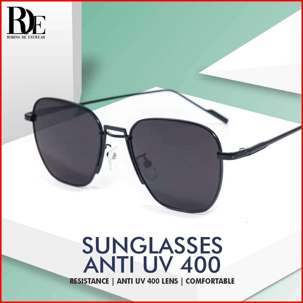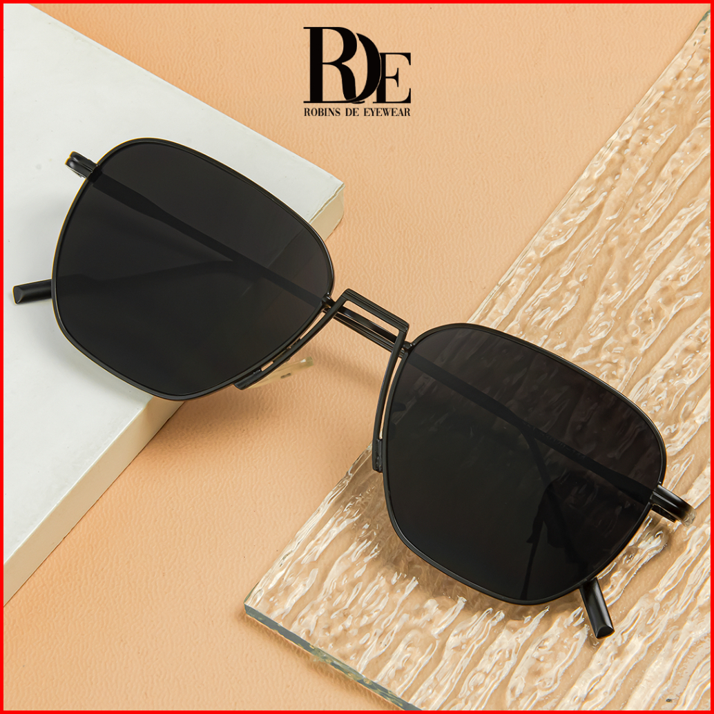 Robins - Kacamata Hitam Geometric Model Metal Sunglasses Fashion 80-651