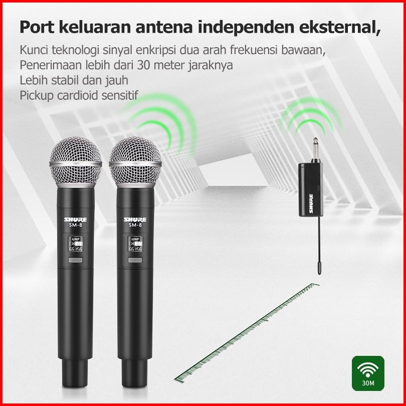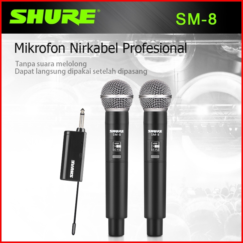 Mic Wireless Original Sm-8 Wireless Mikrofon Mik Karaoke Wireless Microphone Mic Karaoke Suara Jernih Vocal Suara Terbai
