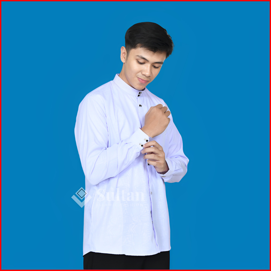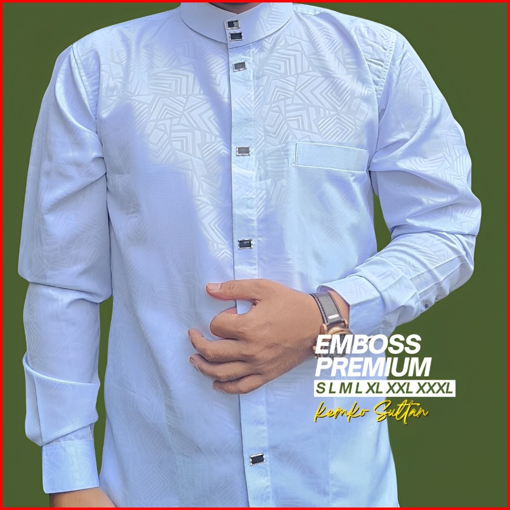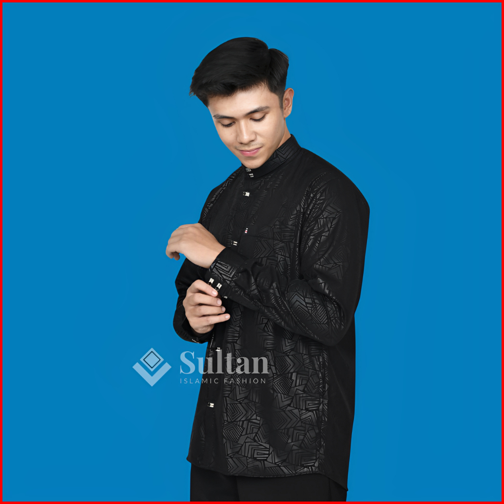 Promo Baju Muslim Kemeja Koko Kemko Pria Sultan Kasual Dewasa Hitam Lengan Panjang Kurta Embos Motif