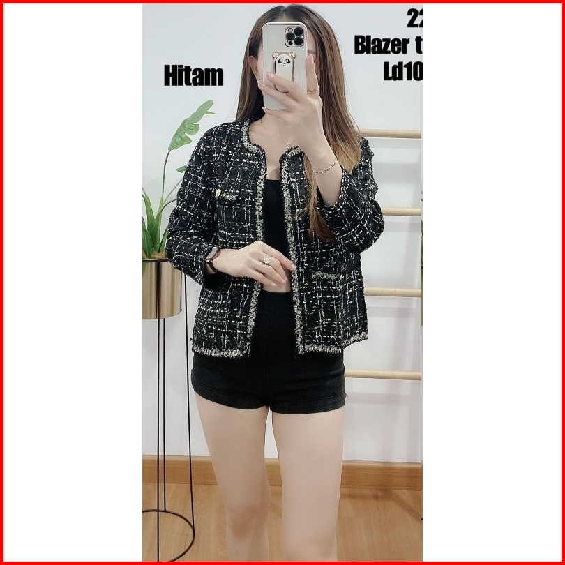 Realpic Bsic Blazer Wanita Tweed Import Premium Tangan Panjang