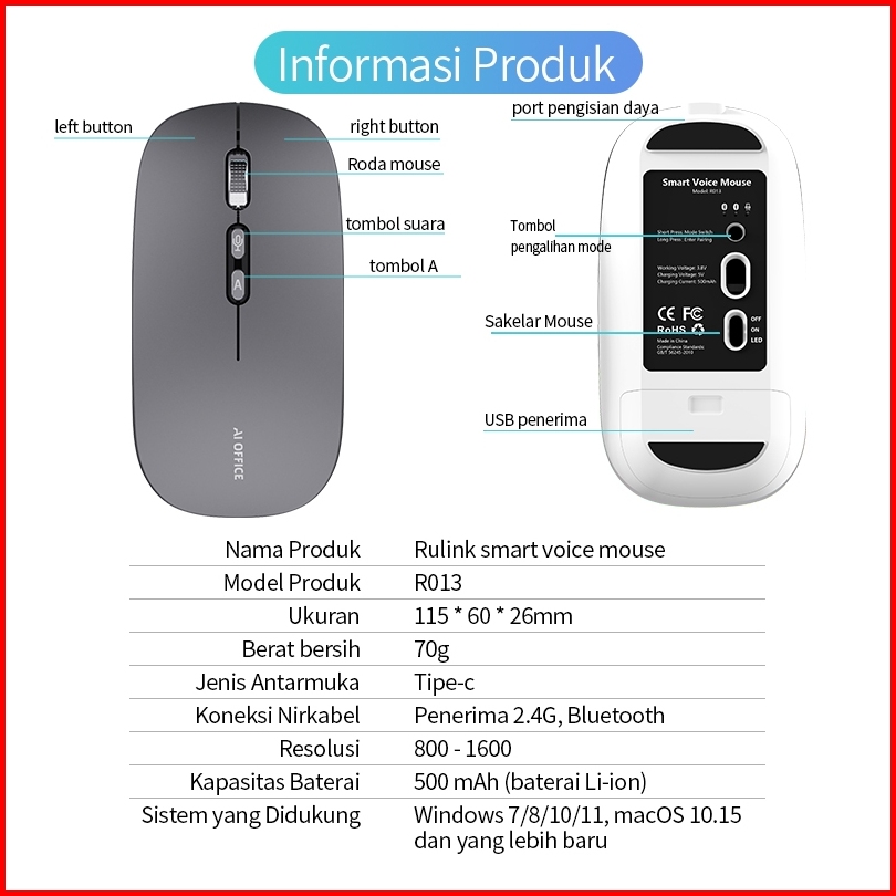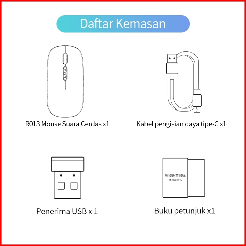 Mouse Ai Cerdas Pengenal Suara-m108 Rechargeable Dengan Receiver Usb Untuk Pc Laptop Silent Click Wireless Nirkabel 2.4g