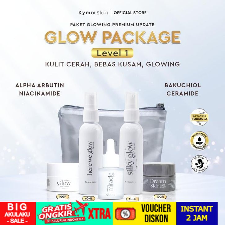 GRATIS ONGKIR KYMM SKIN [Free Pouch] Glow Package LEVEL 1 [Face Wash 60ml, Face Mist 60ml, Bakuchiol Serum 20ml, Day