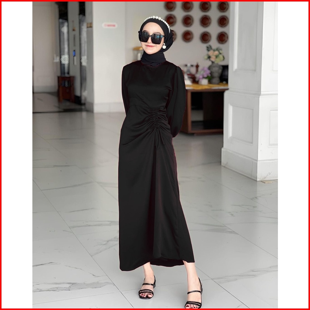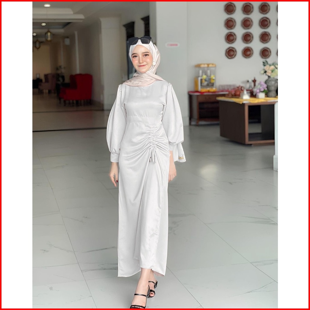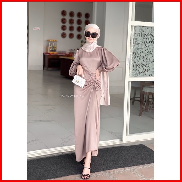 Aileen Dress Gamis Kondangan Kekinian Dress Satin Polos Gamis Wanita Elegan Dress Serut Kekinian Baju Gamis Bridesmaid O
