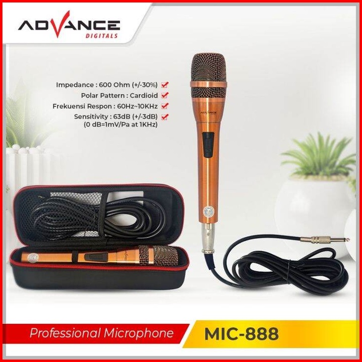 Advance Mic-888 Single Professional Dynamic Microphone Mic Kabel Microphone Premium Profesional -