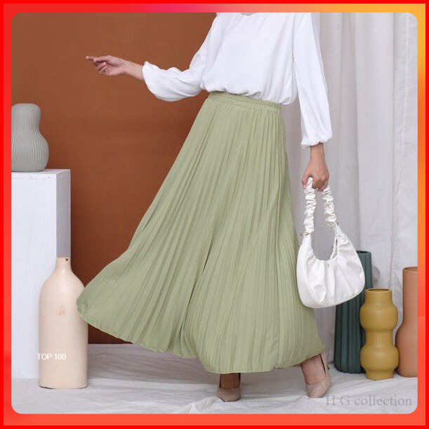Rok Polos Plisket Panjang Rok Plisket Hyget