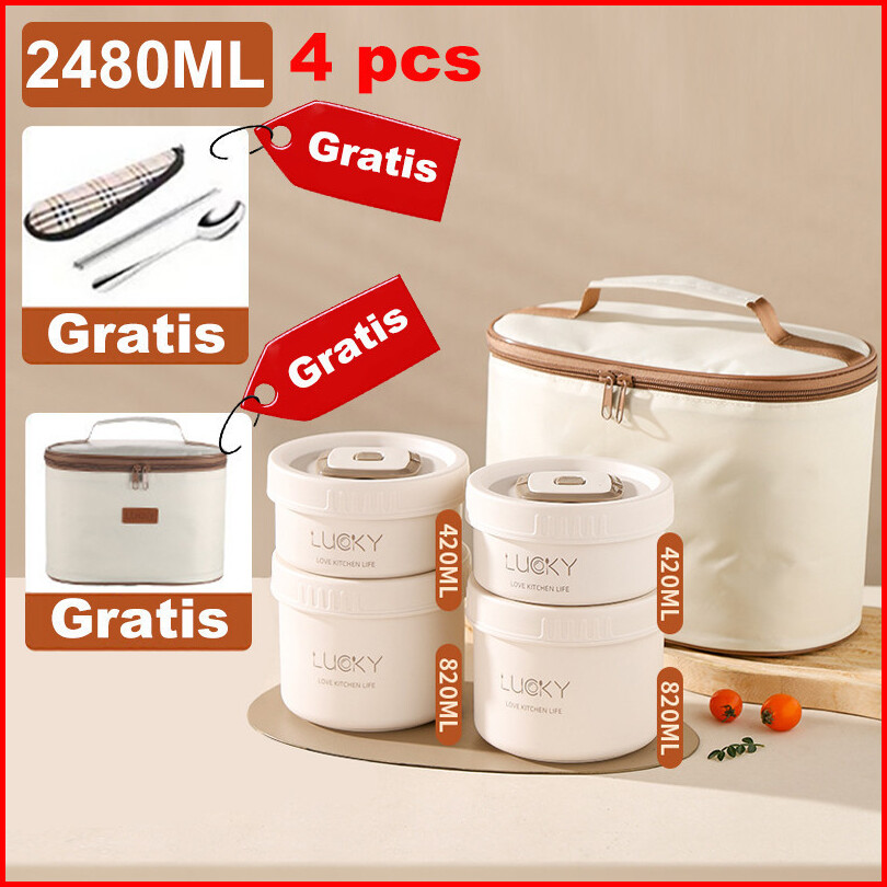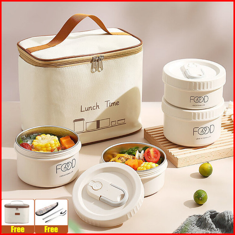 Bekal Makan Set Kotak Makan Lunch Box Siang Bento Portabel Tahan Bocor Gaya Jepang Round Stainless