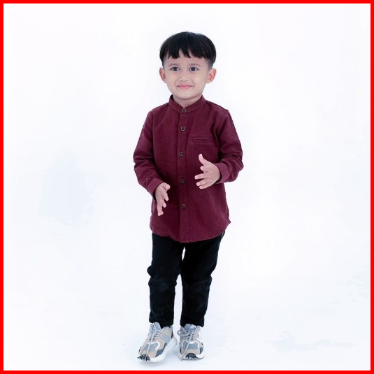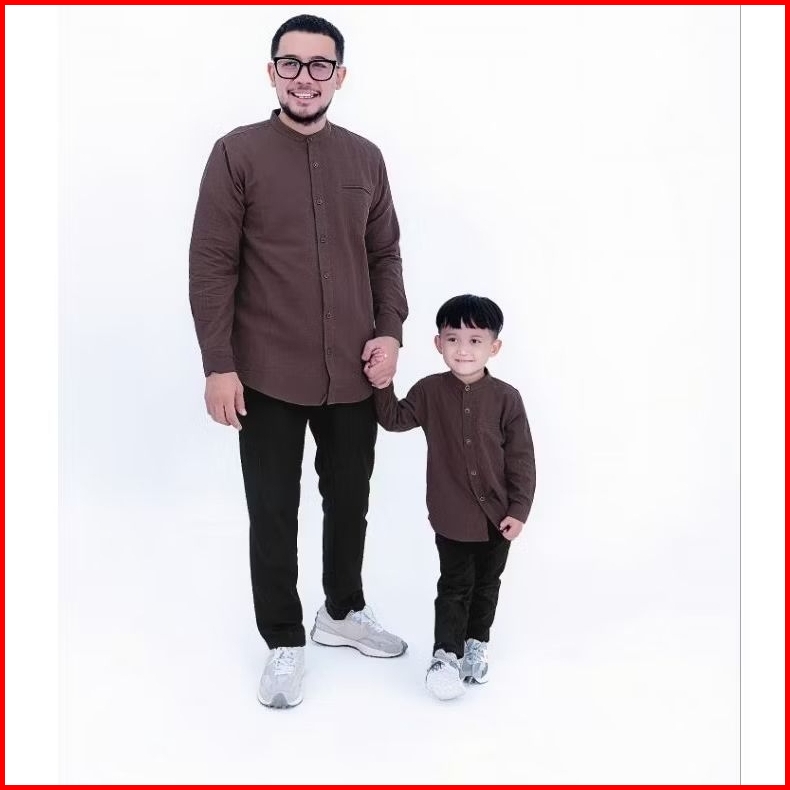 Koko Kemeja Couple Ayah Dan Anak Original Yodan Burgundy Lengan Panjang
