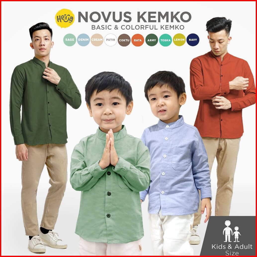 Kemeja Koko Anak Lengan Panjang Kancing Warna Polos Couple Ayah Anak Dewasa Novus Shirt Heija - Koleksi Warna 1