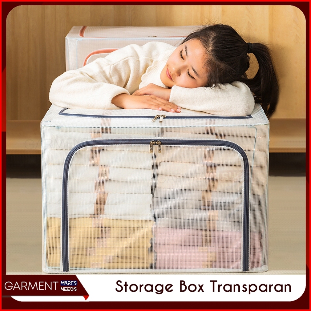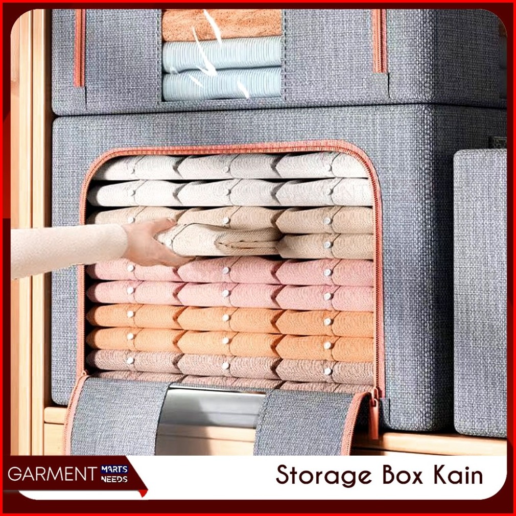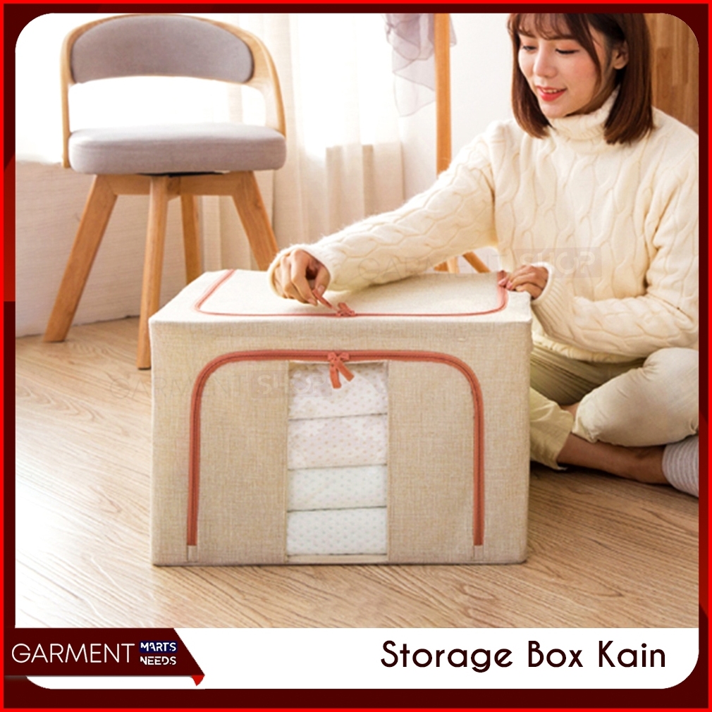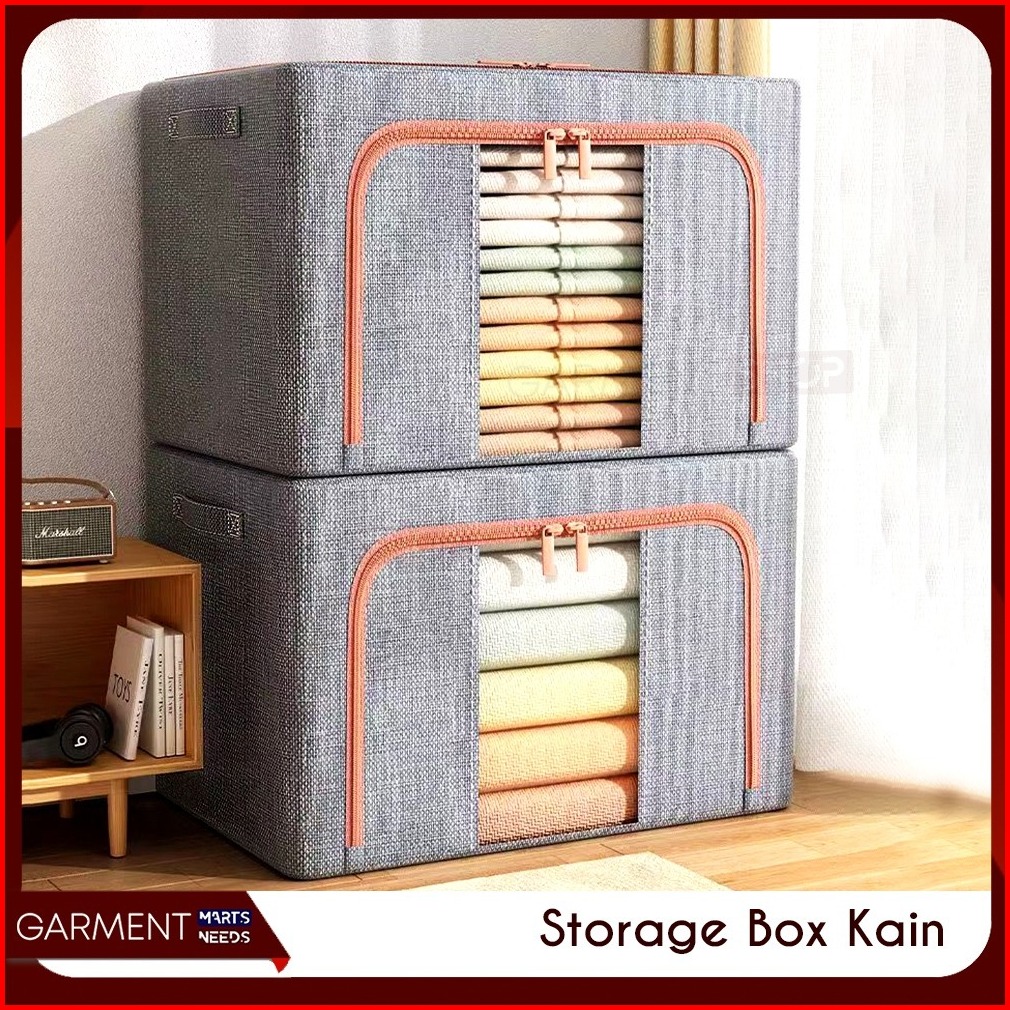 Kotak Lipat Penyimpan Pakaian Selimut Boneka Mainan Box Serbaguna Tahan Lembab Box Besar Oranizer Frame Baja Double Zipp
