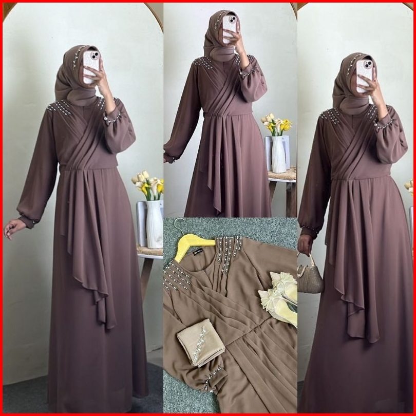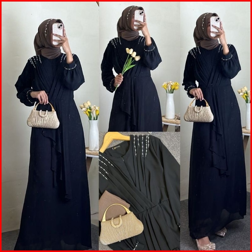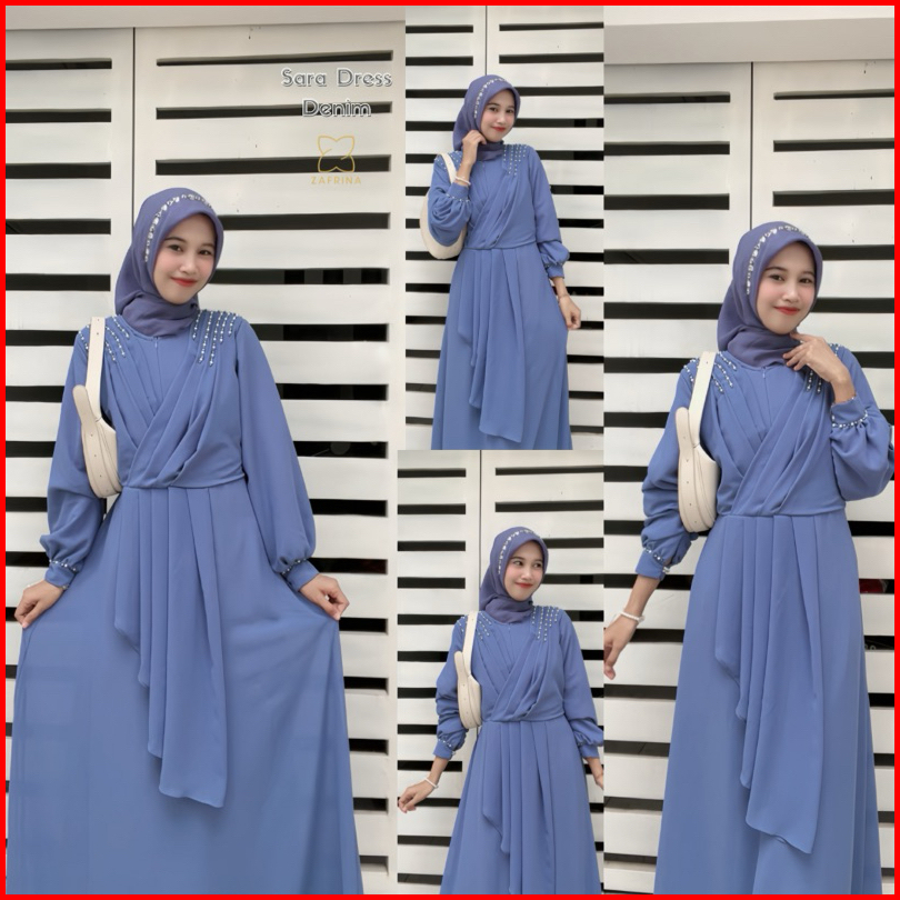 Zafrina -sara Dress Gamis Payet Premium Gamis Kondangan Size M-xl