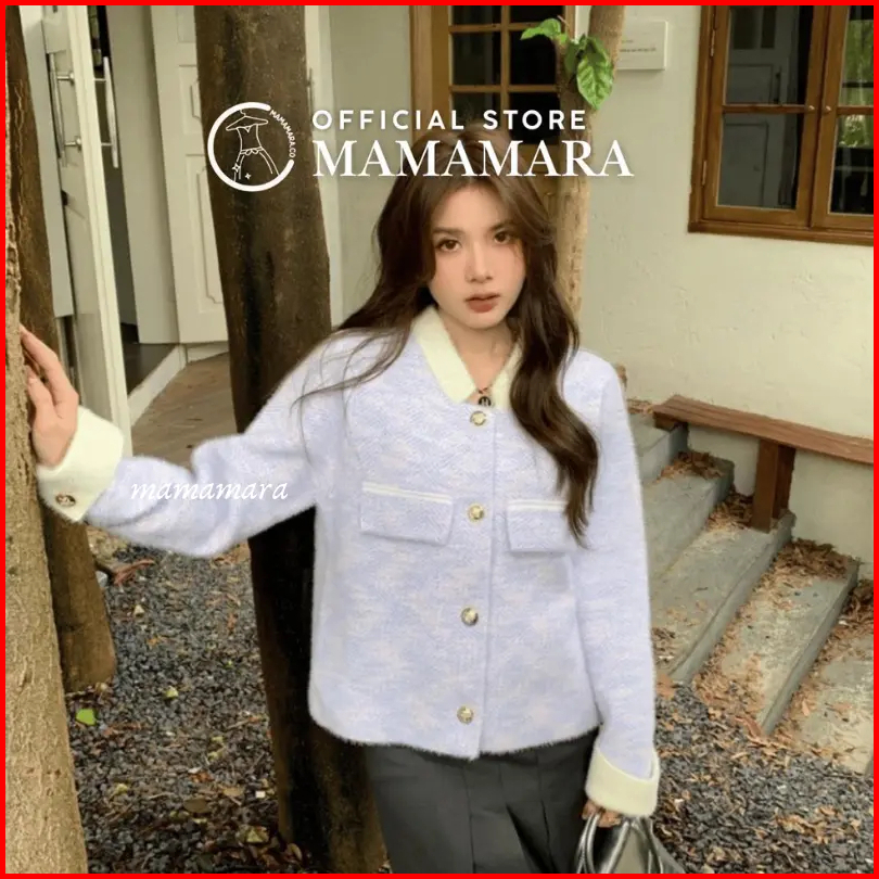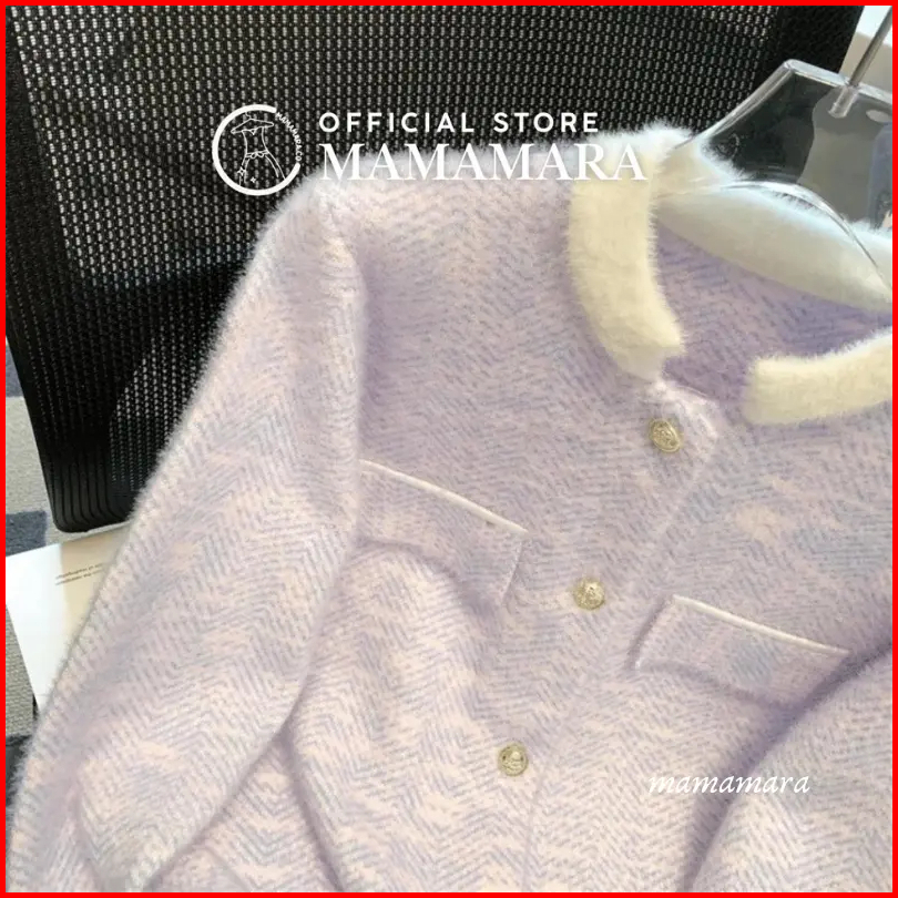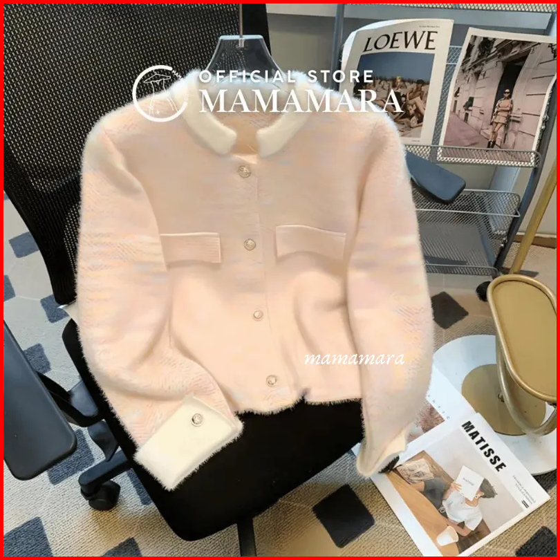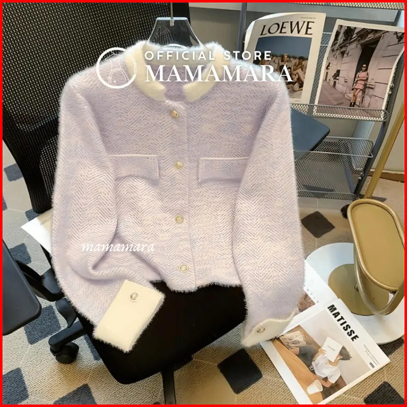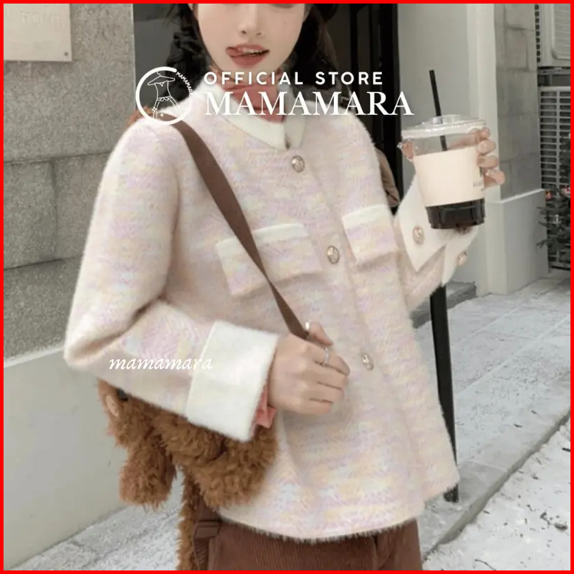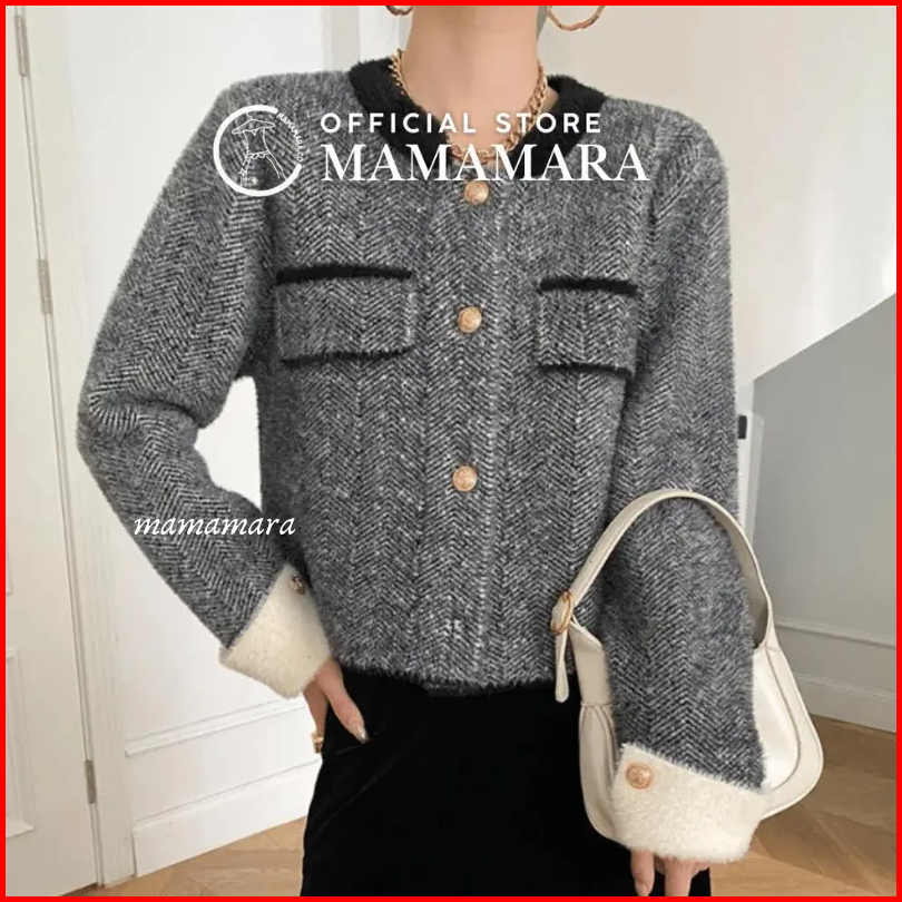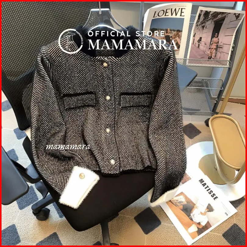 Mamamara - Blazer Rajut Korean Polos Elegant Wol Santai Crew Neck Polos Hitam Lembut Salur