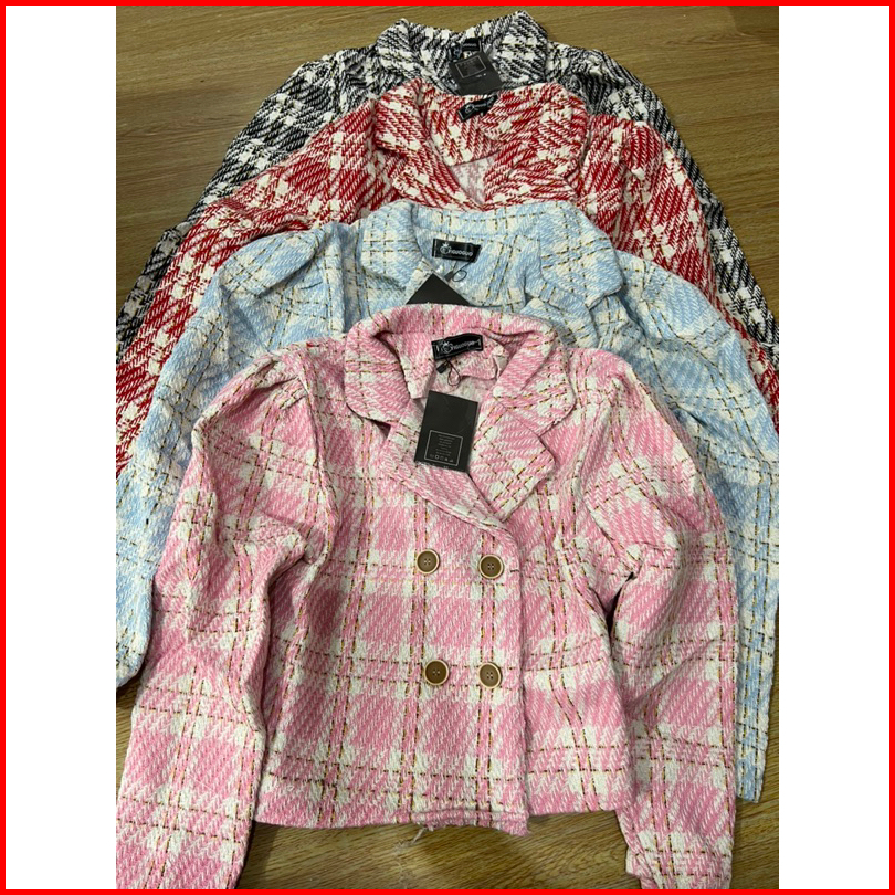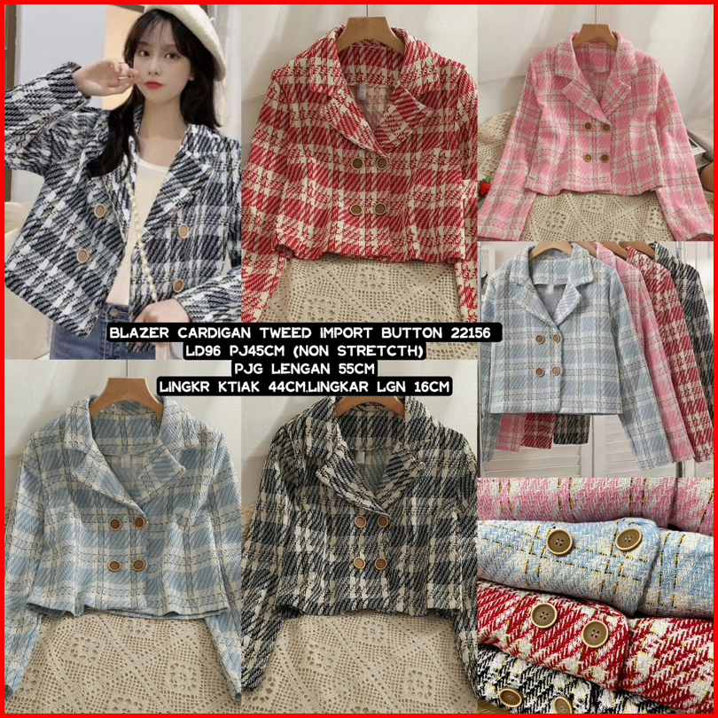 Tg Cardigan Wanita Tweed Import Button 22156 Blazer Tweed