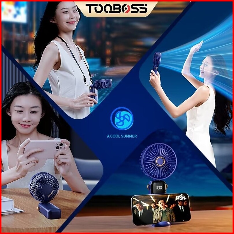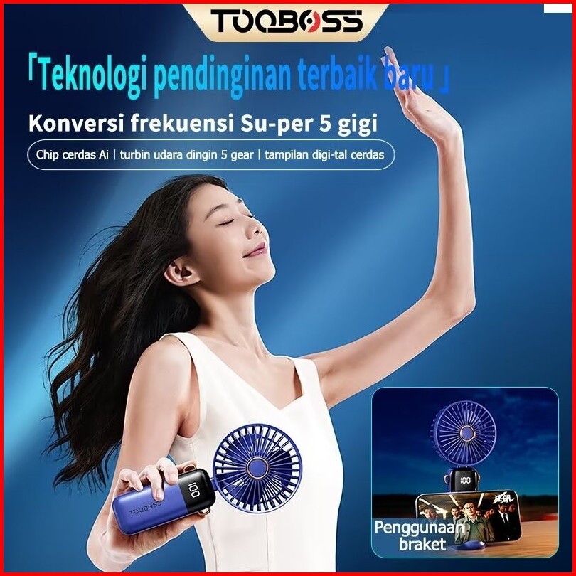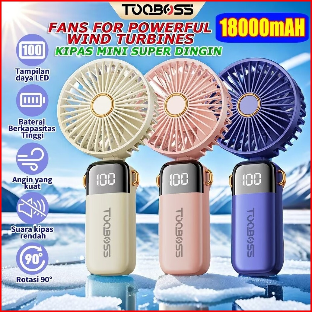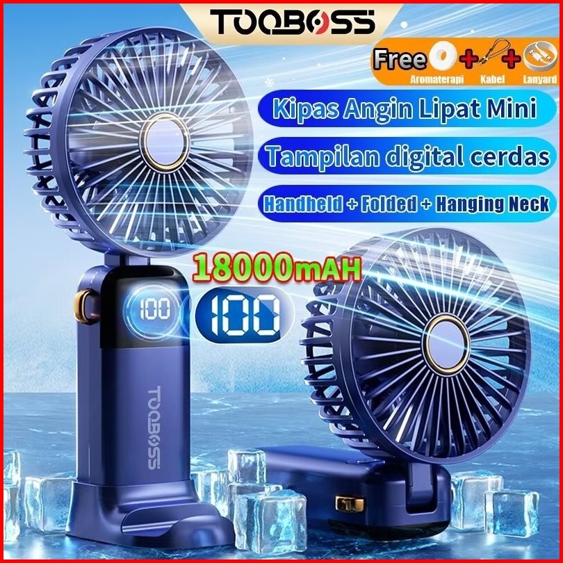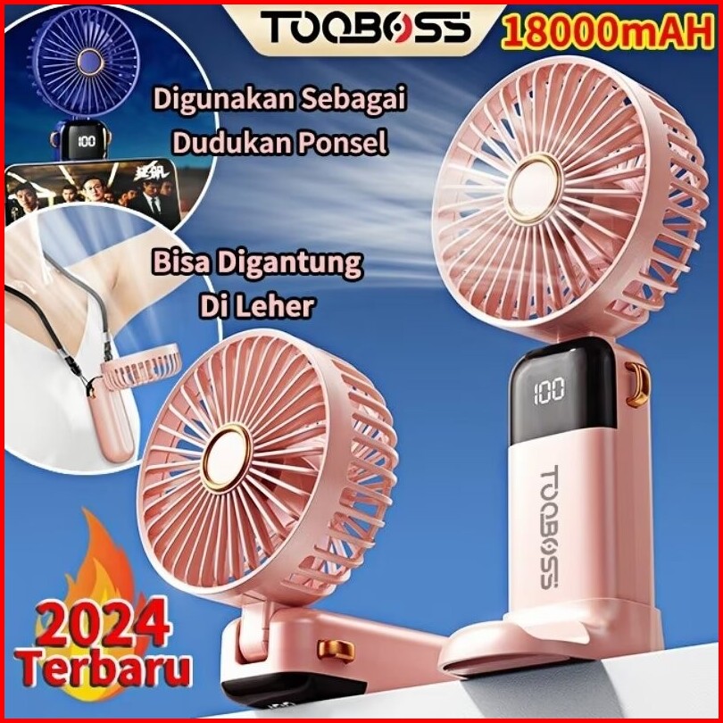 Kipas Angin Mini Portable Rechargeable Usb 18000mah Kipas Lipat Leher 5-speed Wind Led Display
