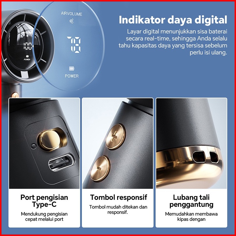 M.a.n.u Kipas Angin Kecepatan Tinggi Bilah Turbin Angin Super Kuat 100 Tingkat Kecepatan Angin Tampilan Led Baterai Berk