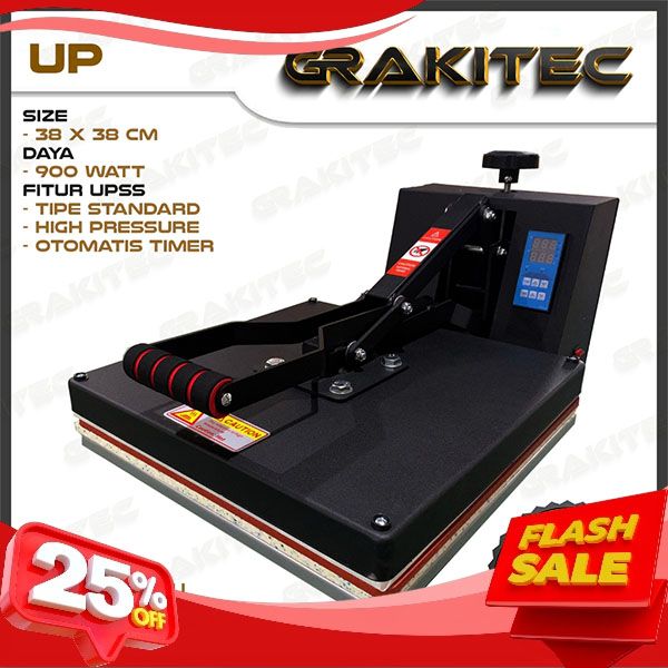 [Mall] Grakitec Mesin Heat Press Tipe UP 38x38 900 Watt Sablon Kaos Premium Non Sliding New