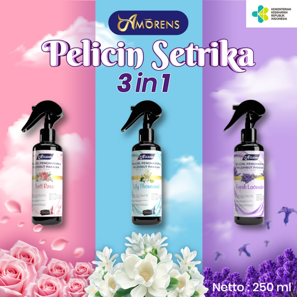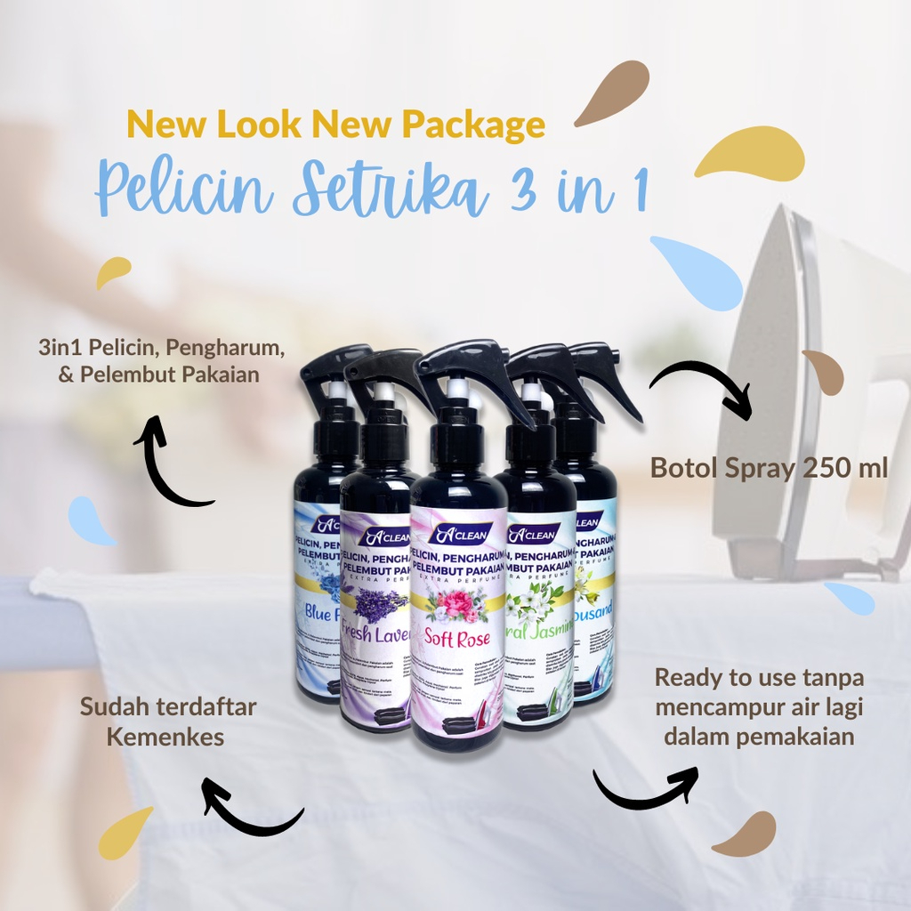 Pelicin Setrika Pakaian 3 in 1 Botol Spray / Pengharum dan Pelembut Pakaian & Laundry 250ml