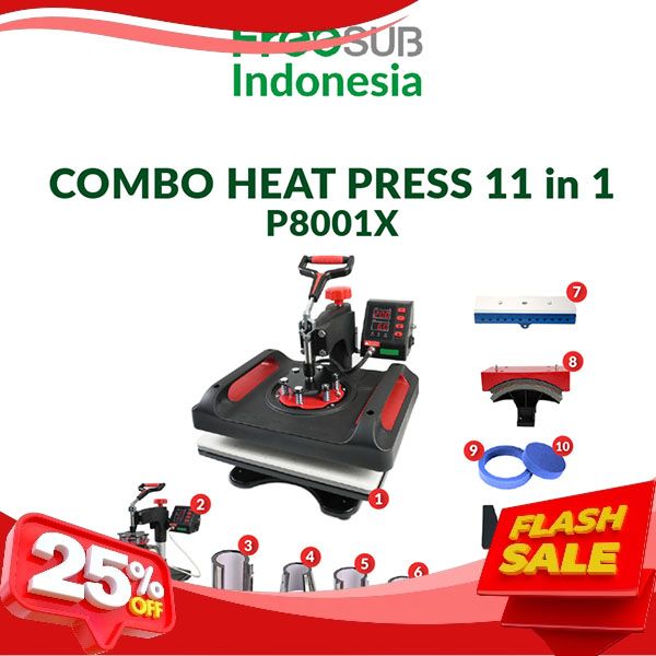 [Mall] FREESUB - Mesin Press Kaos, Sepatu, Topi, Pulpen, Mug, Piring P8001X (5 in 1 / 8 in 1/ 11 in 1) - Combo H