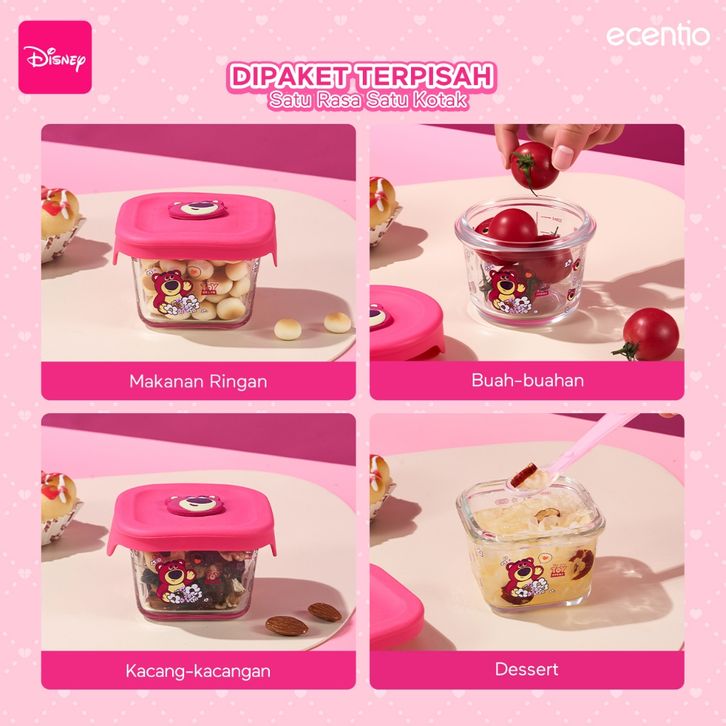 ecentio food container baby mpasi Kaca 3pcs set Mini Kotak Tempat Makan Glass free sendok silikon