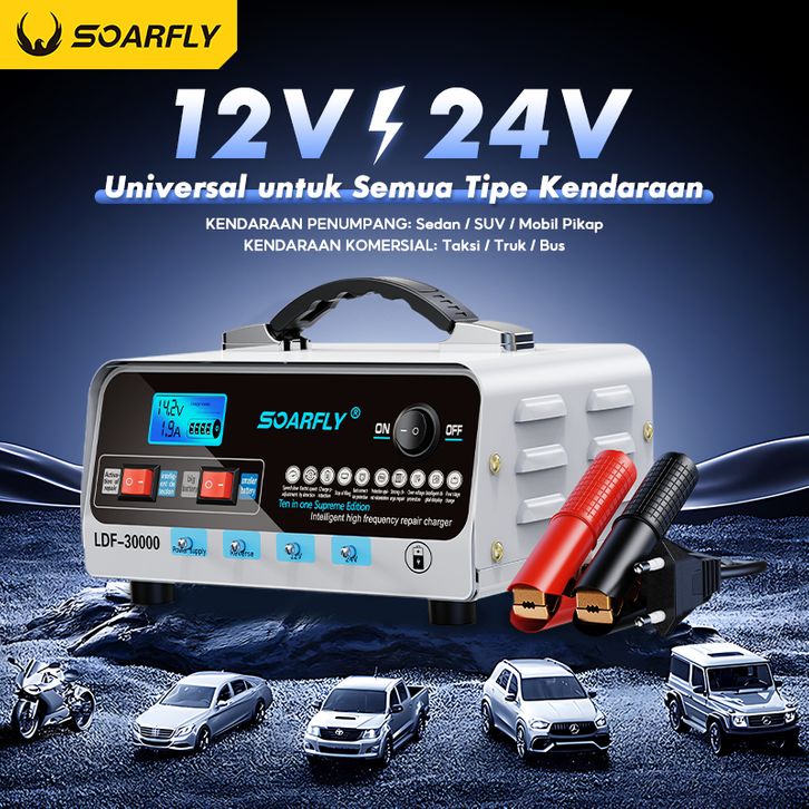 800A Car Battery Charger Aki Otomatis Smart Intelligent Auto Repair Mobil Pengisi daya Charger Otomatis Aki Mobil Motor