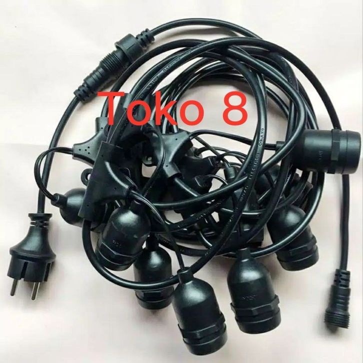 Kabel fiting lampu cafe gantung 10m 10 m dekorasi outdoor fitting
