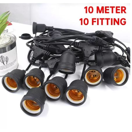 KABEL FITTING LAMPU GANTUNG E27 10 METER 10 FITTING / 10 METER 10 FITTING OUTDOOR TAMAN WATERPROOF
