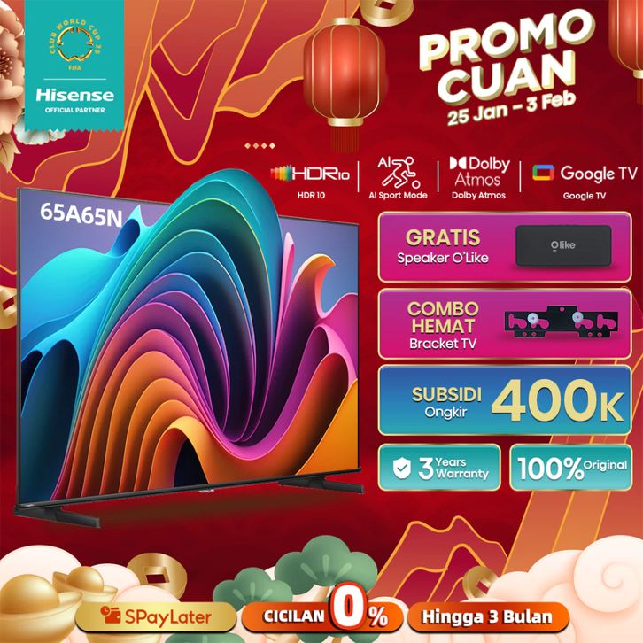 TV HISENSE ANDROID 32/40/43/50/55/65/75/ Inch SMART TV Bezelless Wifi HD FHD UHD TERBARU TERMURAH TEMPEL DINDING MURAH