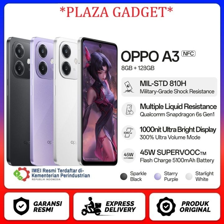 OPPO A3 8/128GB NFC Smartphone Gaming [Military-Grade Shock Resistance, Qualcomm Snapdragon 6s 4G Gen1, 45W SUPERVOOC