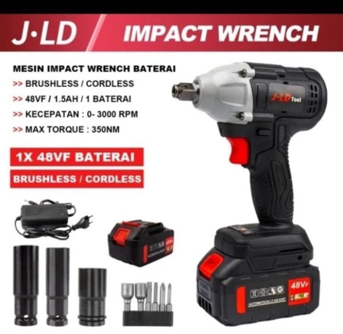 Cordless Impact Wrench 48V Brushless JLD 48S - Bor Obeng Kunci 48 Volt - JLD impact baterai
