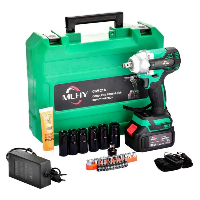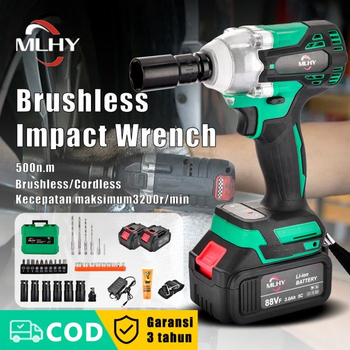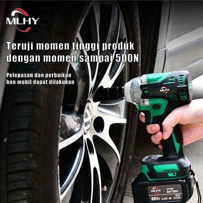 MLHY Brushless Impact Wrench 88VF Baterai Cordless Mesin Bor 500N.M - BiruQ-1Baterai impact baterai
