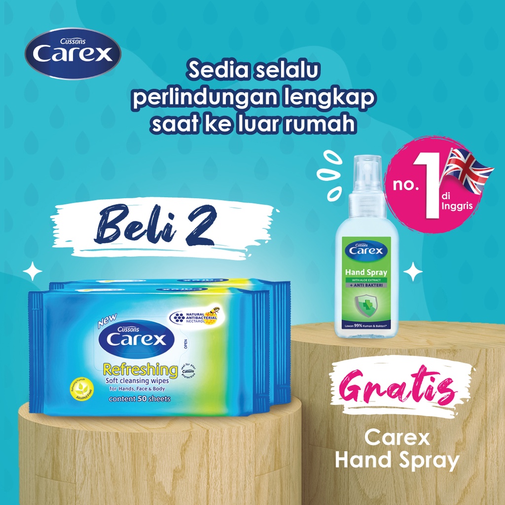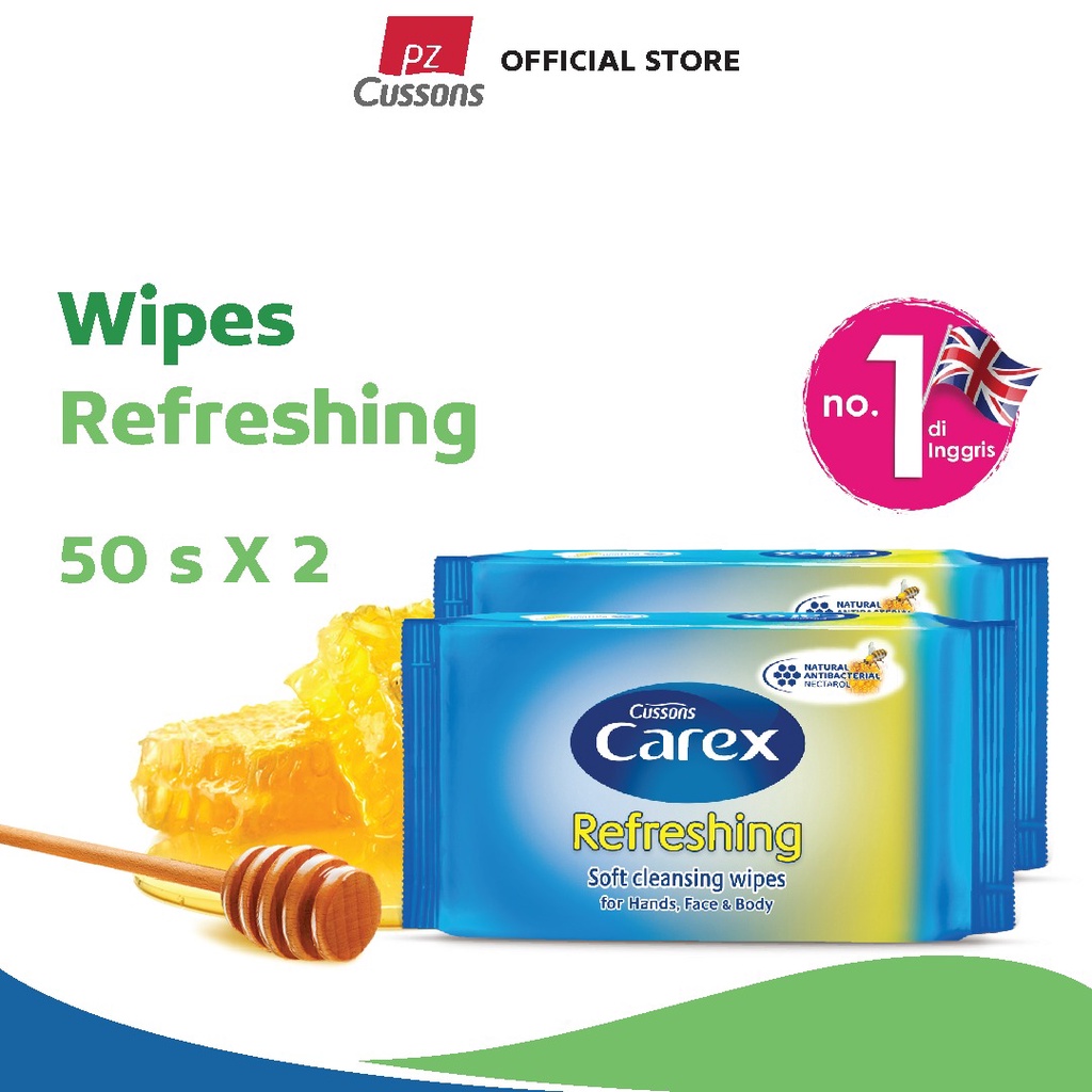 Carex Wipes Refreshing - Tisu Basah Antibakteri 50 Sheets X2