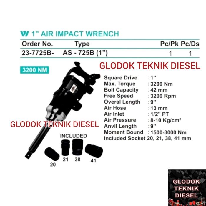 WIPRO AIR IMPACT WRENCH 1 INCH AS-725B / ALAT BUKA BAUT TERBAIK impact baterai