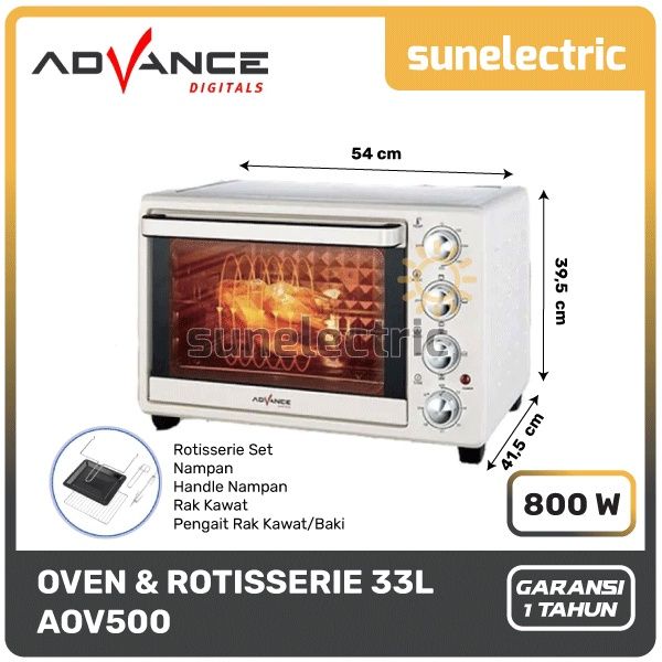 Advance Electric Oven Listrik Kapasitas 33 Liter Daya 800 Watt + Rotisserie + Timer AOV-500 / AOV500 / AOV 500