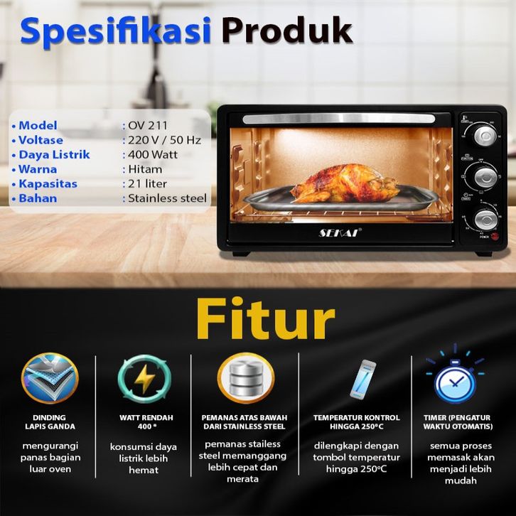 SEKAI Oven Listrik Low Watt Kapasitas 24L UkL / 21L UkD Pemanggang Makanan SerbaGAANa - OV 211