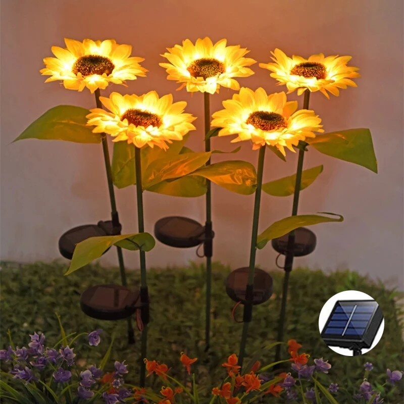 Lampu Taman Outdoor LED Bunga Matahari Tenaga Surya / Lampu Hias Taman Teras Luar Ruangan IP65 Tahan Air Solar Garden Li