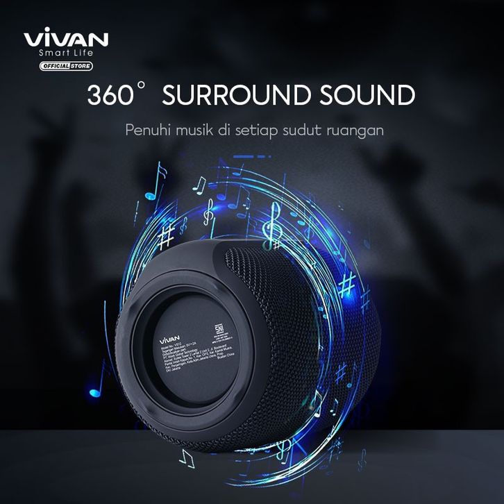 VIVAN Speaker Bluetooth VS12 V5.0 Surround Sound 360° Waterproof Sound Quality IPX6 Garansi Original