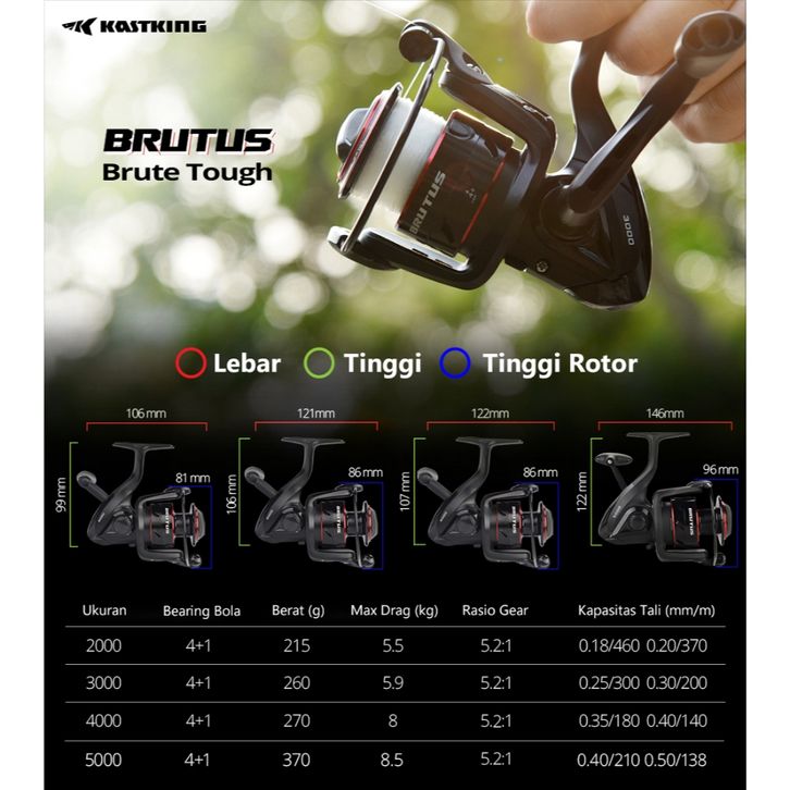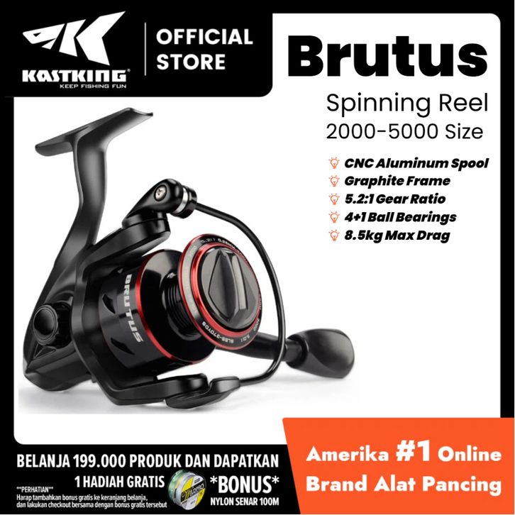 KASTKING BRUTUS Reel Pancing Spinning Gulungan Pancing Putar, 5.2:1 Gear Ratio, 4+1 Ball Bearings, 8.5kg max drag, Power