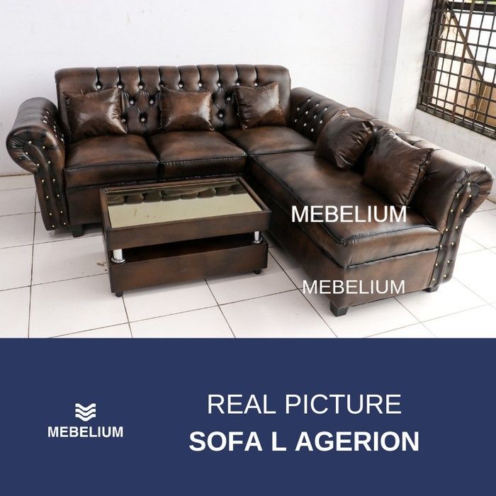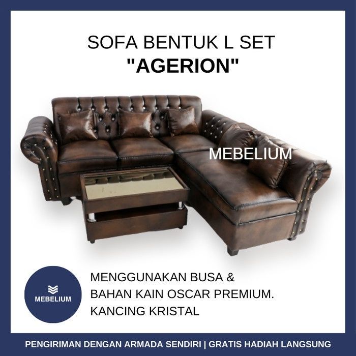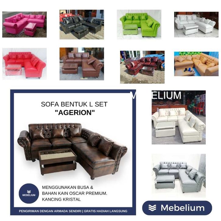 Sofa L Kancing Set Algerion Bahan Kulit Oscar Premium ORI Banyak Warna