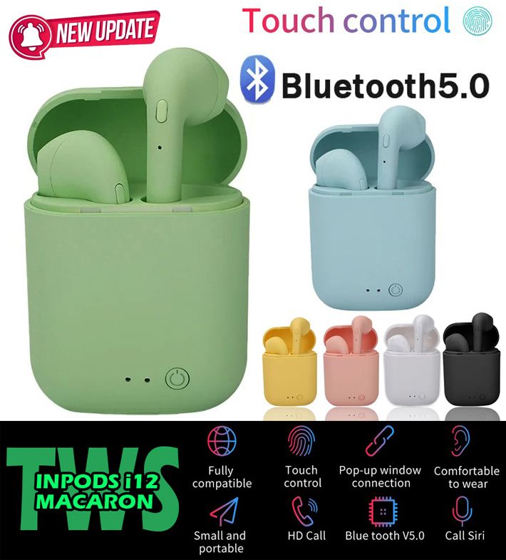 Headset Bluetooth Inpods i12 TWS Macaron Wireless Bluetooth Earphone v5.3