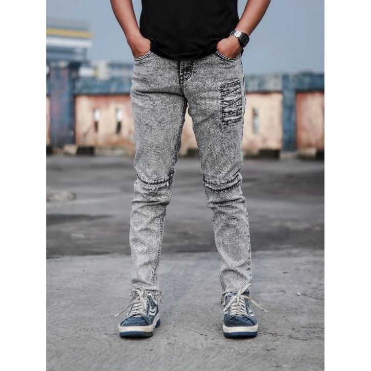 CELANA JEANS PRIA SLIM FIT SKINNY SNOW LIGHT GREY ABU SANDWASH