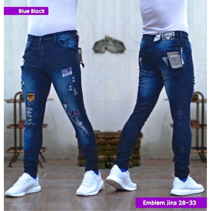 CELANA JEANS PANJANG PRIA SOBEK EMBLEM BORDIL KEREN PREMIUM DISTRO