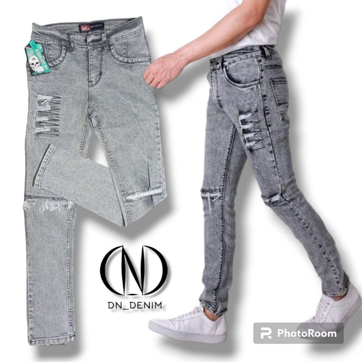CELANA JEANS PANJANG ABU GREY SENDWASH BIKERS SOBEK LUTUT PRIA RIPPED SOFTJEANS SKINNY STREECTH