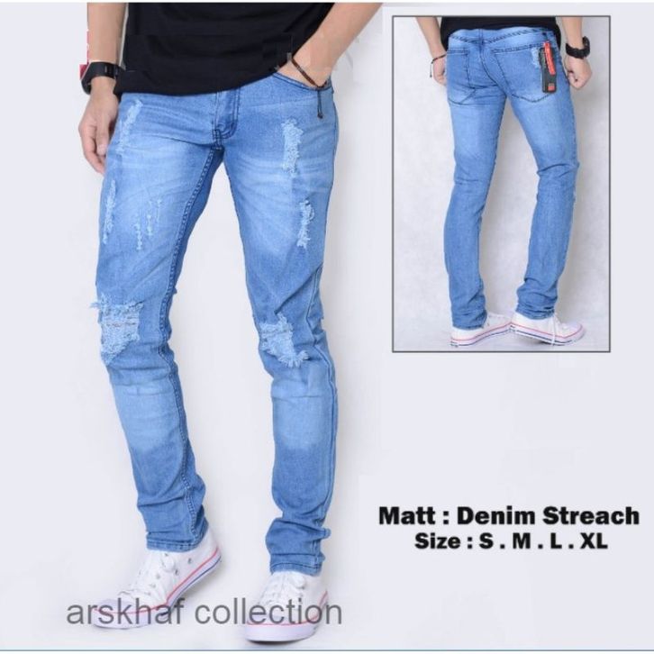 CELANA PANJANG PRIA JEANS SOBEK LUTUT//RIPEED JEANS TERBARU