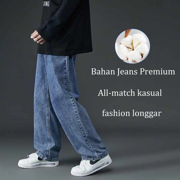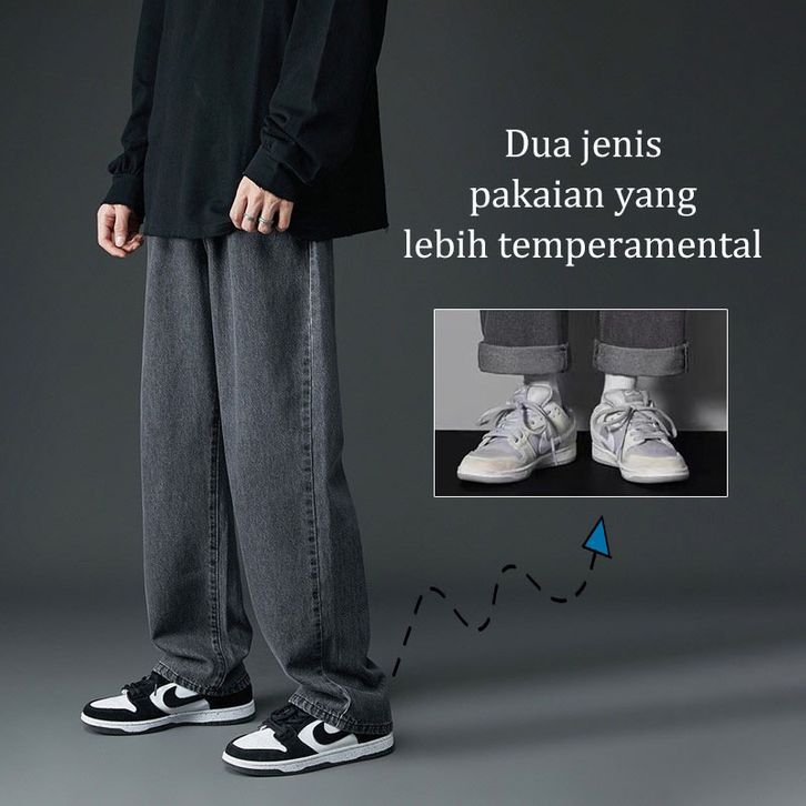 CELANA JEANS PRIA BAGGY PANTS KOREAN STYLE OVERSIZE LOOSE SNOW JEANS STRAIGHT KULOT BOYFRIEND JEANS LONGGAR CELANA COWO