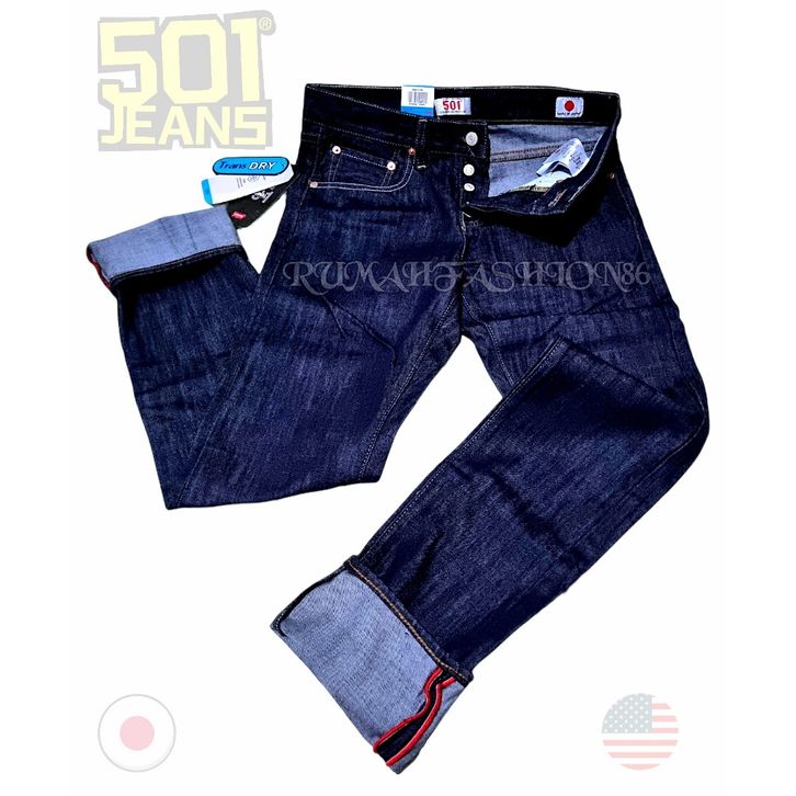 CELANA JEANS PANJANG PRIA DENIM SELVEDGE BIRU GARMEN DONGKER POLOS CASUAL FASHION READY BIG SIZE