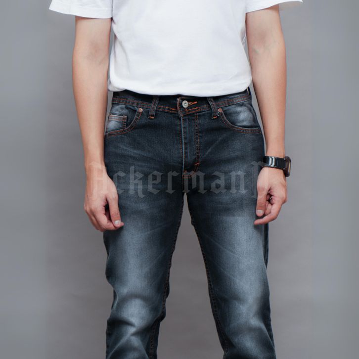 ACKERMANN - CELANA JEANS DENIM PRIA CELANA PANJANG SLIMFIT SNOW BLACK 100CM PREMIUM