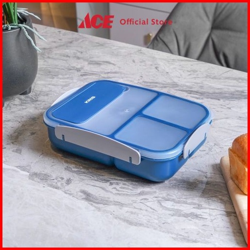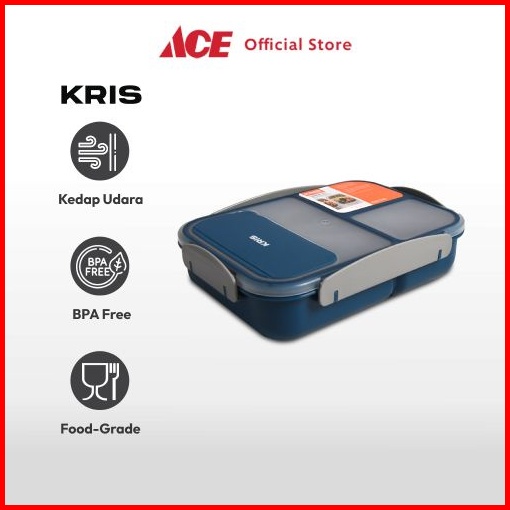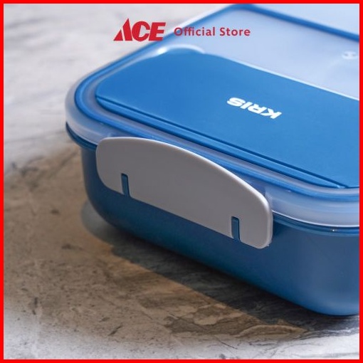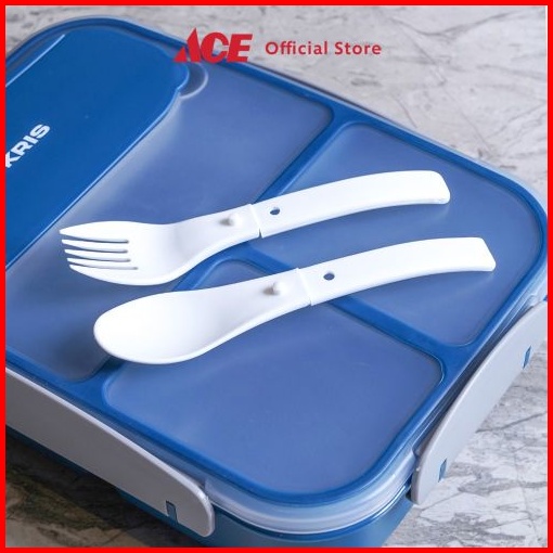Ace Kris 1.7 Ltr Kotak Makan 3 Sekat Engan Sendok Garpu - Biru Muda Lunch Box Food Grade Food Box Dengan Clip Kotak Beka