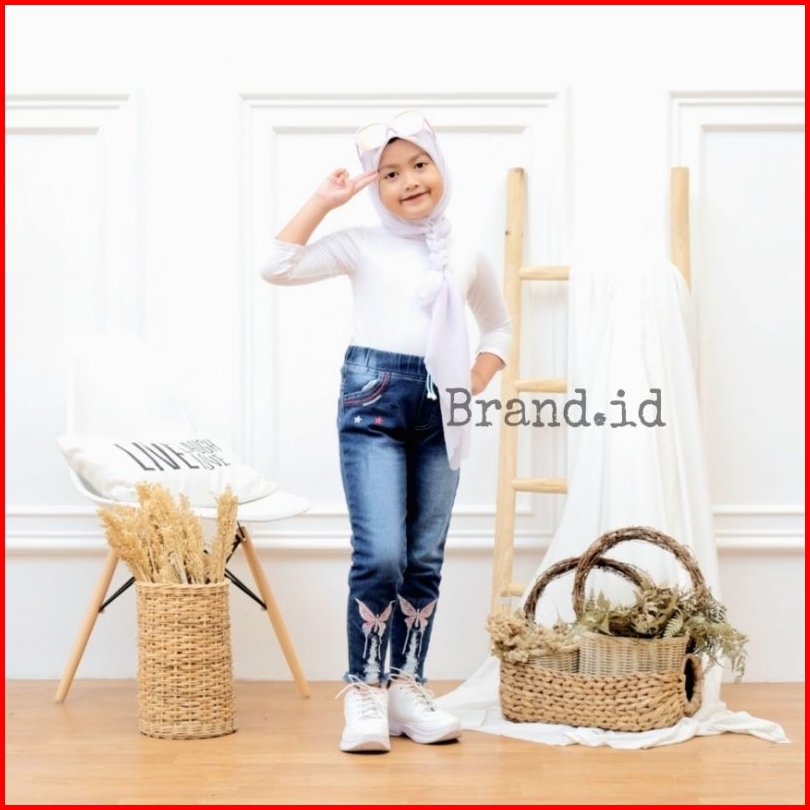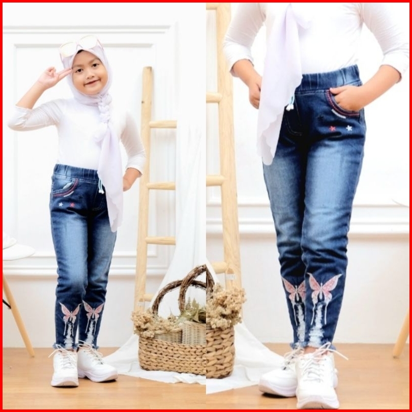 Celana Jeans Kupu Ripped Anak Perempuan 1-12 Tahun