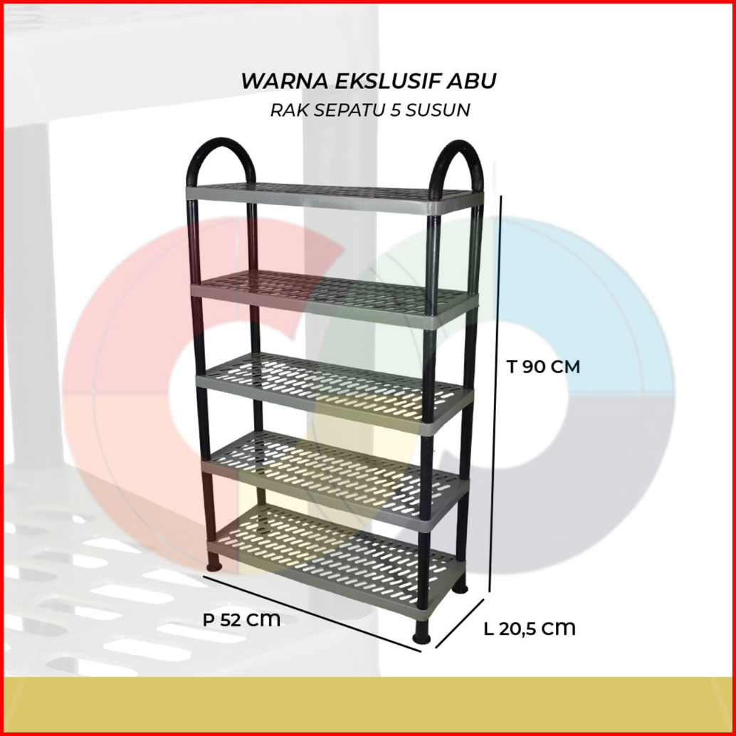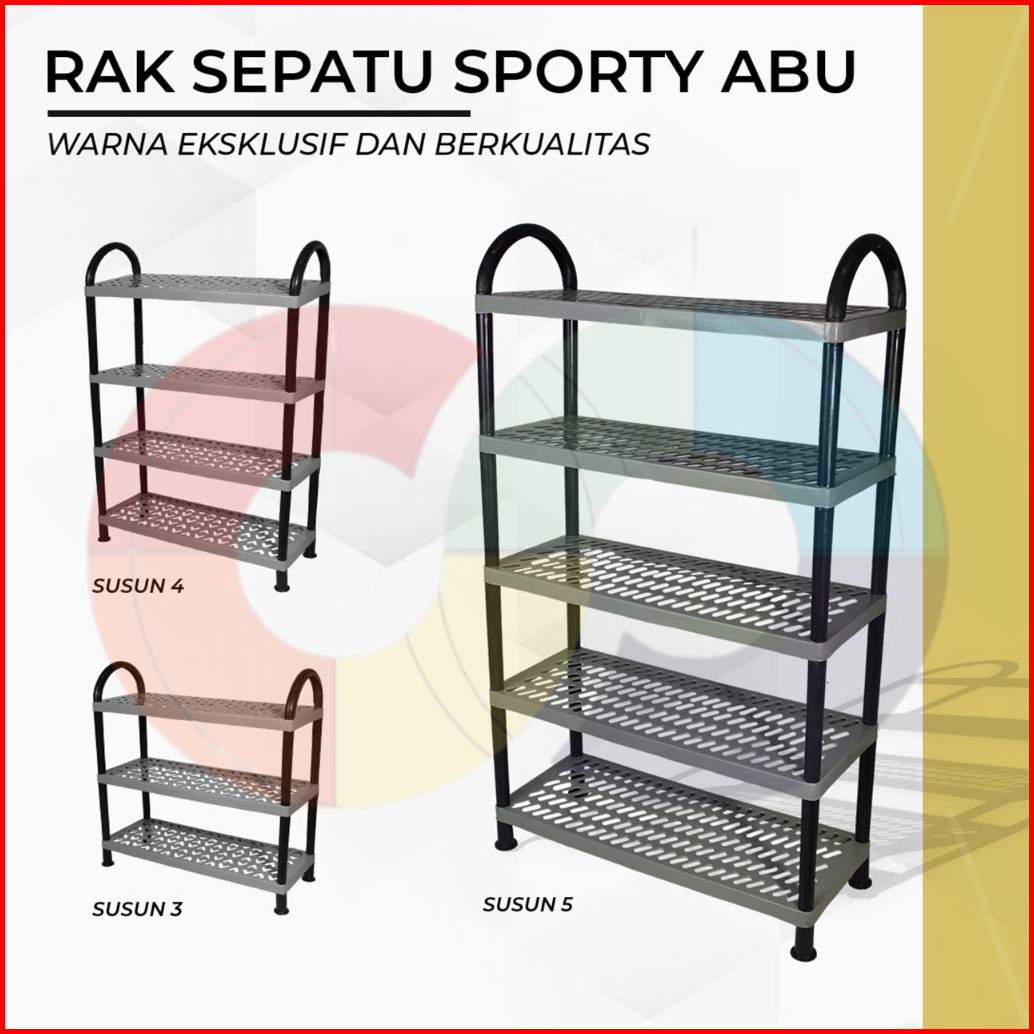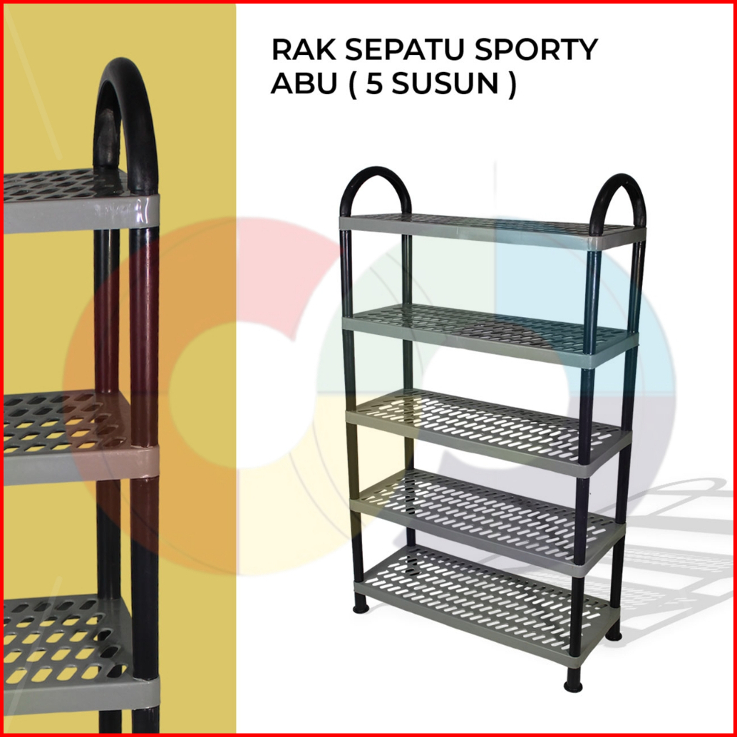 Rak Sepatu Sporty Grey Susun 5 Plastik - Warna Abu-abu Rak Sandal