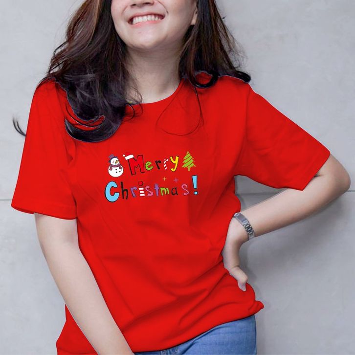 KAOS NATAL TERBARU 2024 Atasan Wanita Elegan Jumbo Size S/M/L/XL/XXL/XXXL Baju Kaos Distro Wanita Terbaru T shirt Wanita