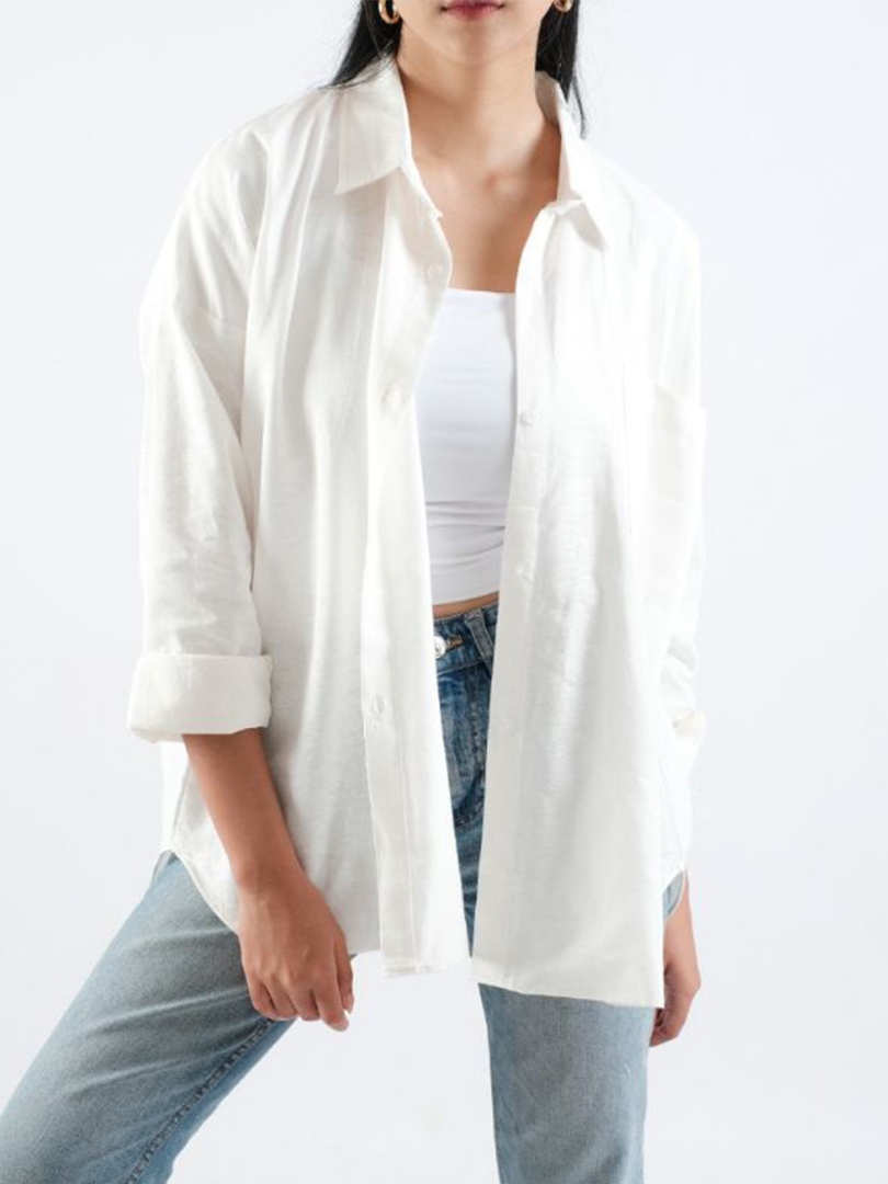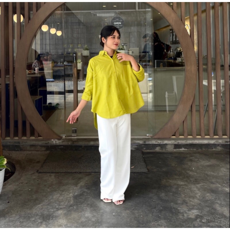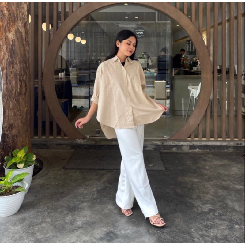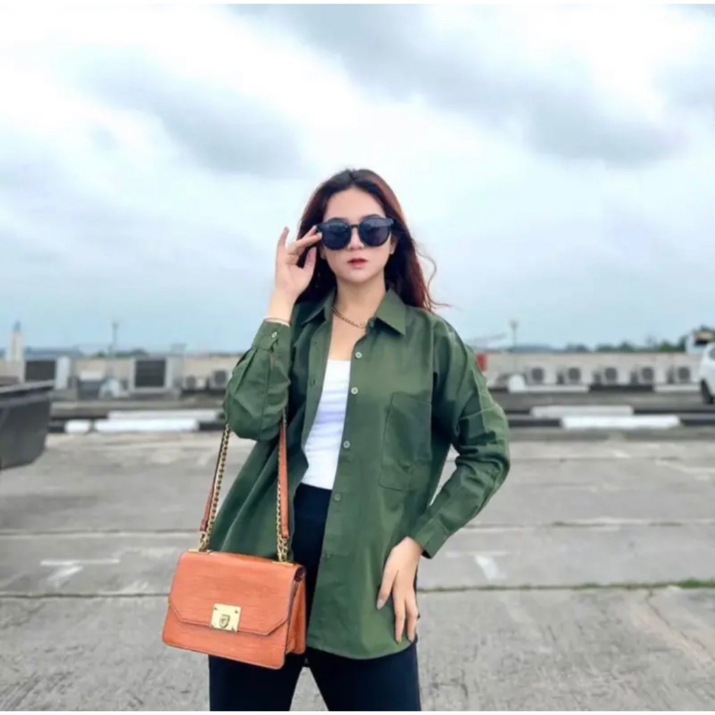 (Gratis Ongkir) KEMEJA LINEN OVERSIZE SHIRT OVERSIZE KEMEJA POLOS SHIRT WANITA BASIC LINEN POCKET OLIVIA BAJU KERJA